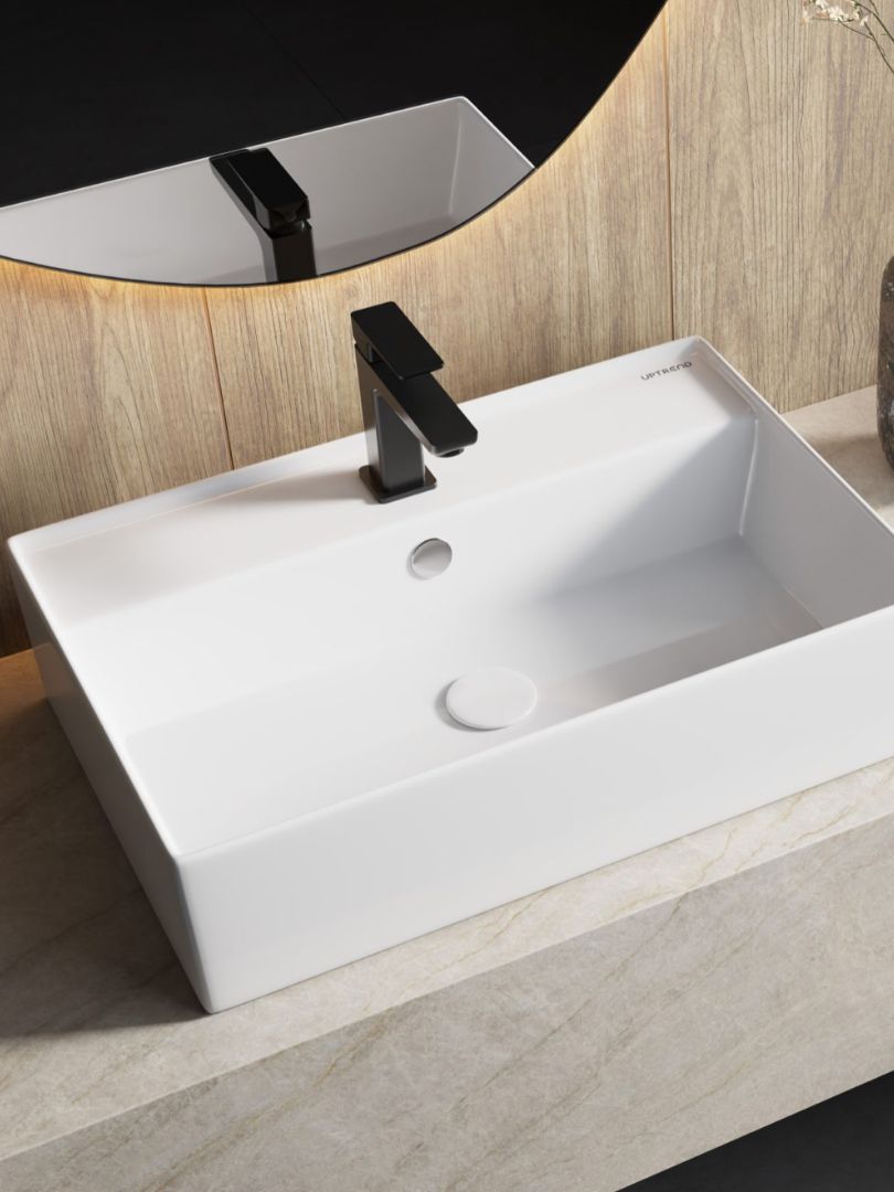 Model F008-W łączy funkcjonalność i ponadczasowy wygląd. Górna część wykonana z ceramiki idealnie dopasowuje się kolorem do umywalek Uptrend, co zapewnia spójny wygląd całej strefy umywalkowej. System click-clack umożliwia intuicyjną obsługę – wystarczy jedno naciśnięcie, aby otworzyć lub zamknąć odpływ, bez konieczności używania dodatkowych elementów.