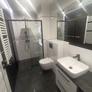 Prywatna łazienka w domu jednorodzinnym w Lublinie. Klient poszukiwał sprawdzonej miski WC oraz umywalki o eleganckim wyglądzie. Miska WC Caneo TR2196D oraz umywalka Hera TR41290 świetnie pełniły oczekiwania inwestora.